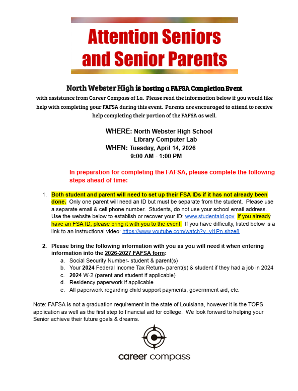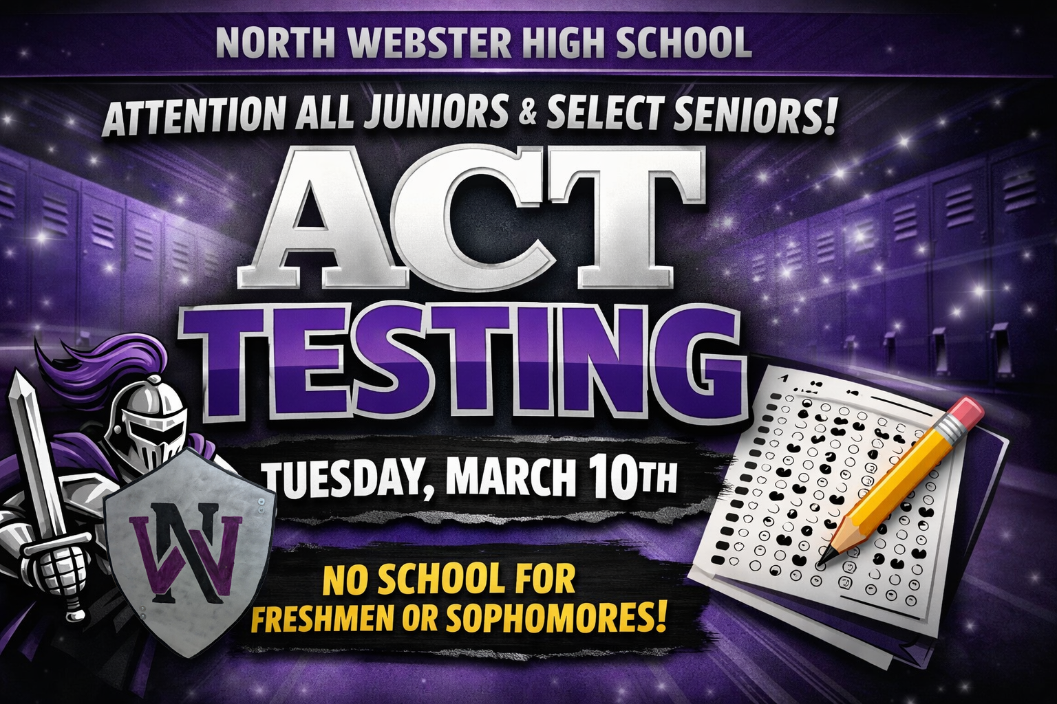 When the school was formed in 2011, a new school name, mascot, and colors were all chosen by the students who would make up the school. The school was named North Webster High, with purple, black, and silver being the school colors, and the school mascot being the Knights. During the summer of 2011, excitement filled all of North Webster Parish as the new NWHS students “painted the landscape” purple.