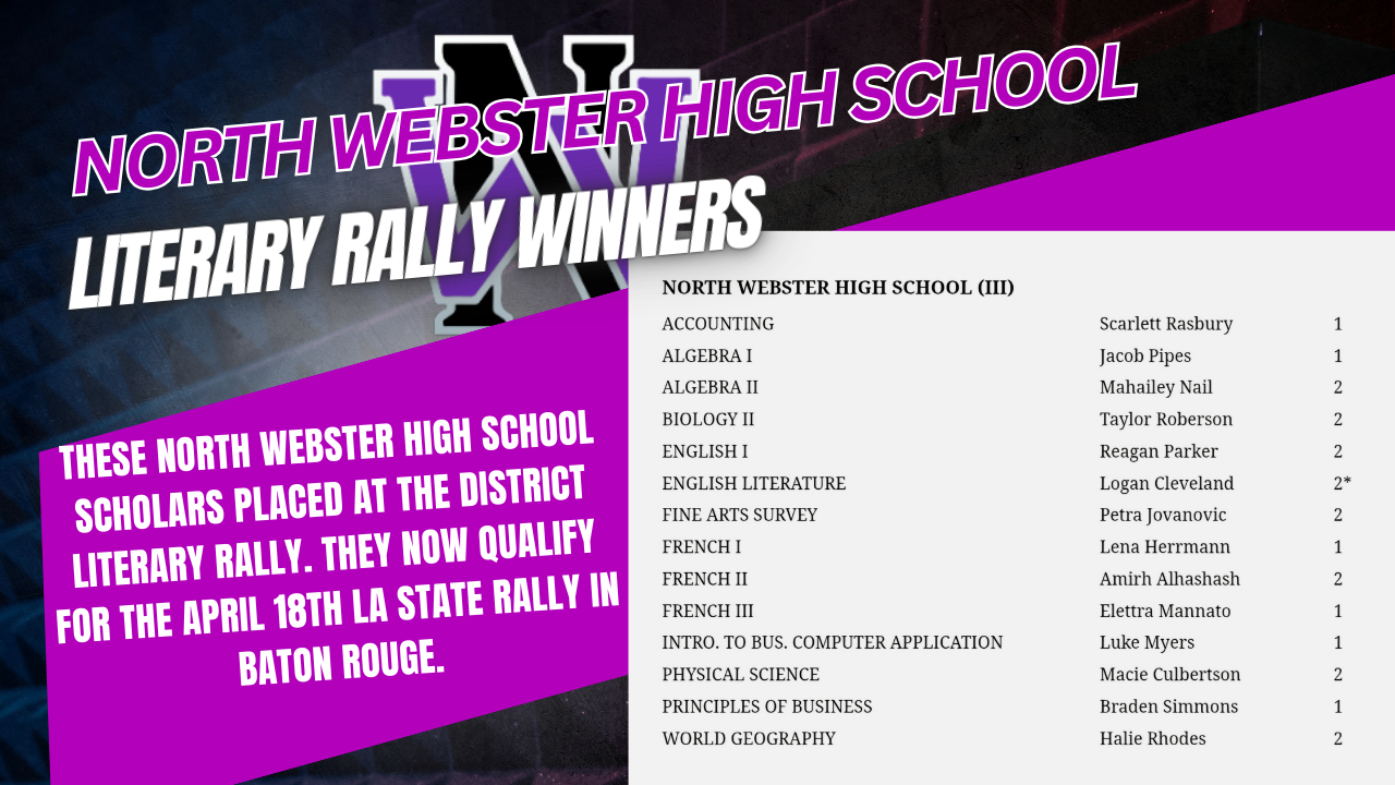 Since 2011, NWHS has excelled both academically and athletically. The school is presently classified as a “C” school with the Louisiana Department of Education. Each year multiple sports advance to post season play in the LHSAA playoffs.